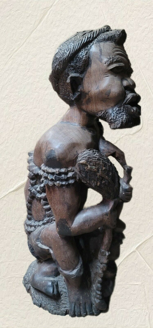 Antique African Wood Carving Old Man Tribal Figurine Statue - Heavy 66.75lbs