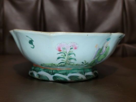 Antique 1900's Chinese Famille Rose Footed Porcelain Bowl Plate(7")