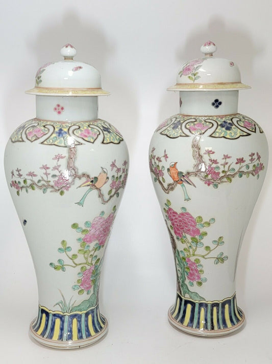 A Pair Of Famille Rose Porcelain Temple Vases And Lids(Mid-20th C )