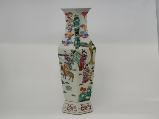 CHINESE FAMILLE ROSE PORCELAIN PAINTED HEXAGONAL SHAPE VASE