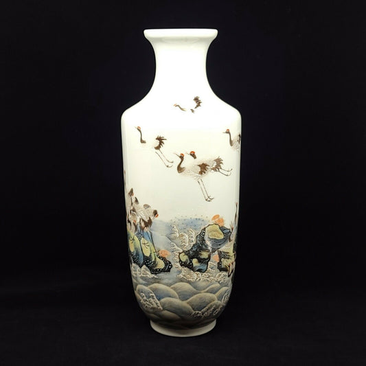 Rare Chinese Marked Famille Rose Porcelain Crane Vase