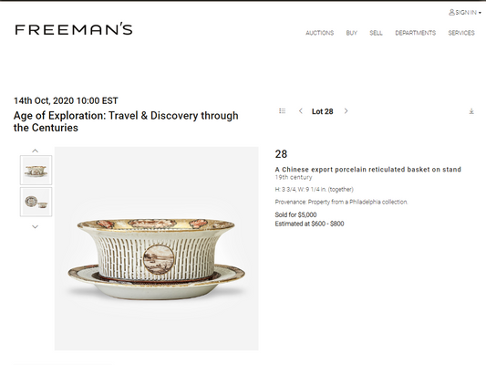 A Chinese export porcelain reticulated chestnut basket on stand