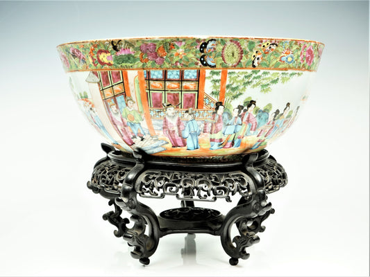QING Dynasty Chinese Rose Medallion Punch Bowl